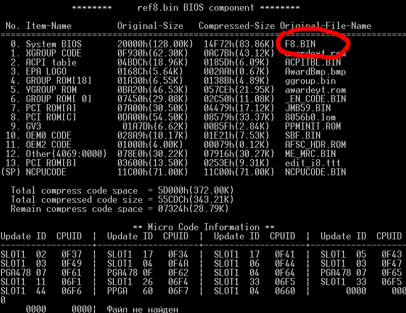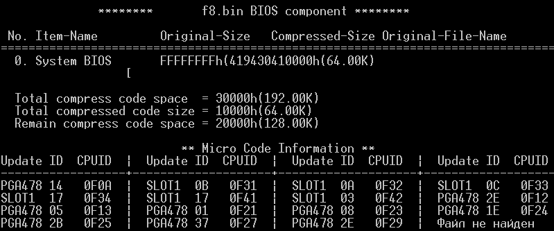 Однако, у всех (и других подобных) есть существенный недостаток - зависимость от вышеописанных утилит и различных модификаций Award BIOS (оставаясь при этом v.6.00PG). Например, (не специально, но получилось удачно :) ) выбранный файл: