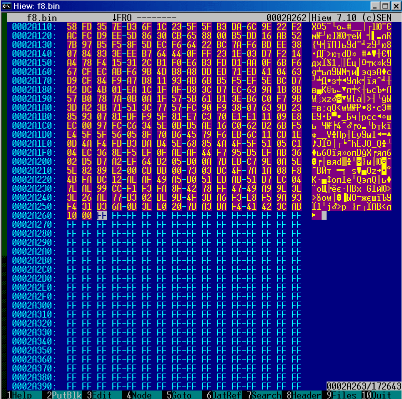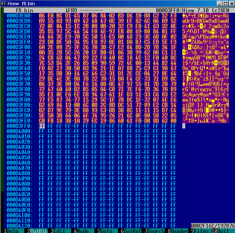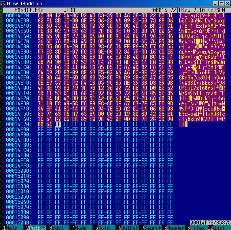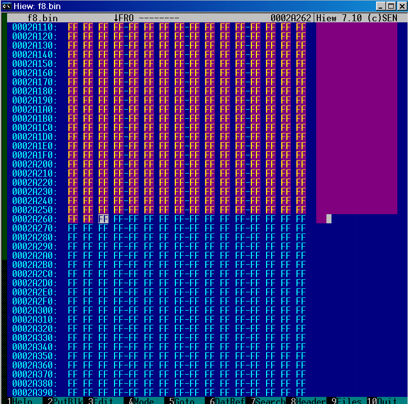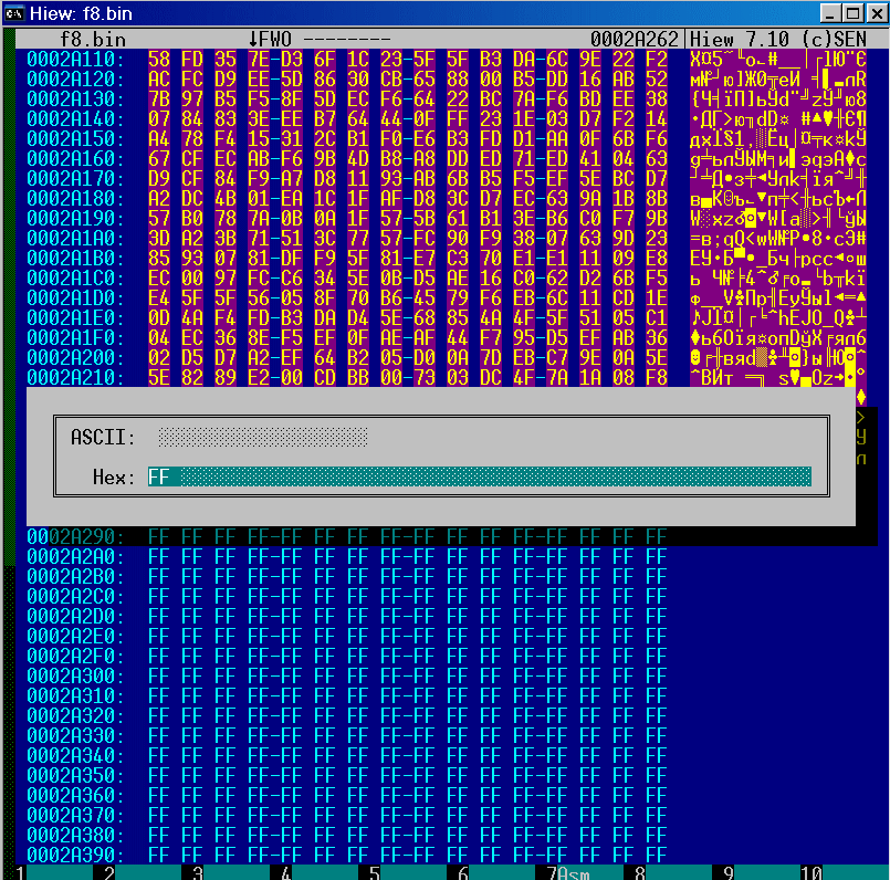 и забиваем ее эфэфками (ALT-F2 для hiew).
