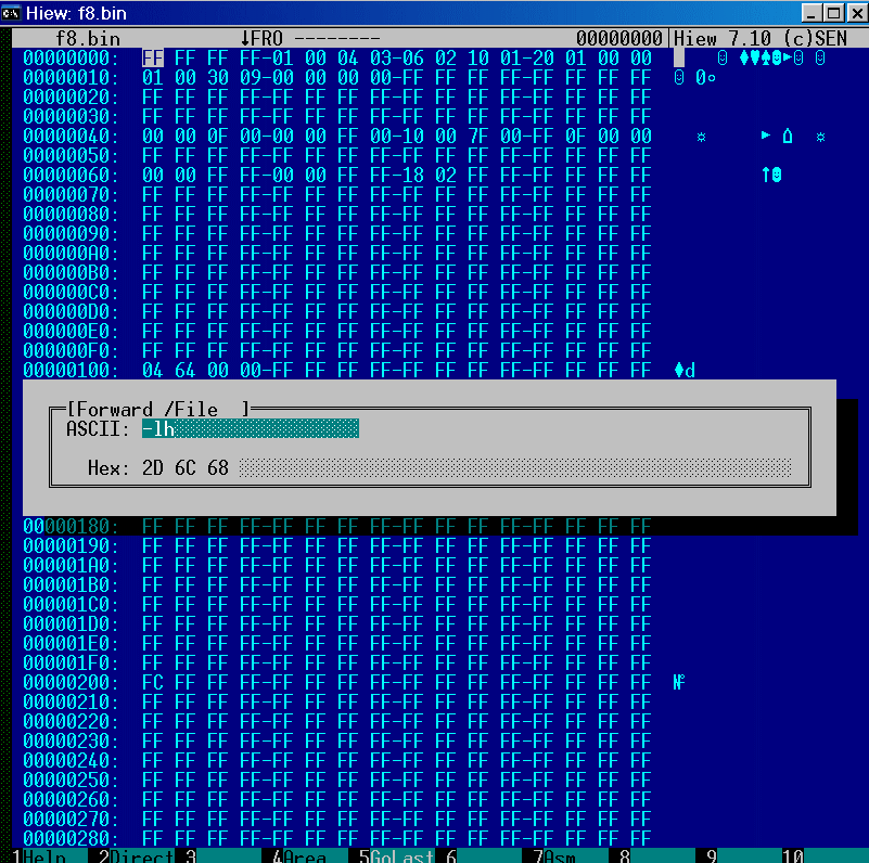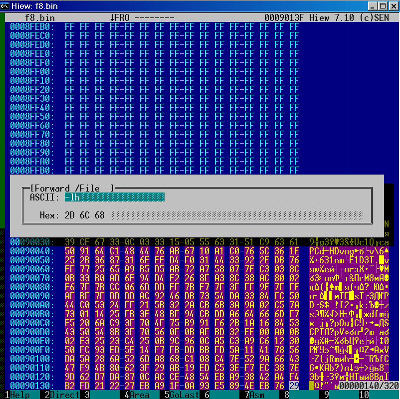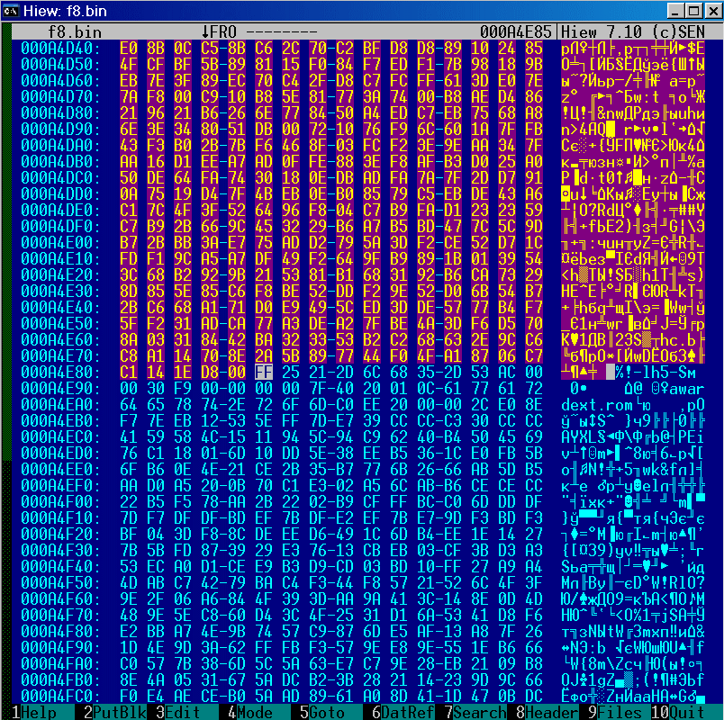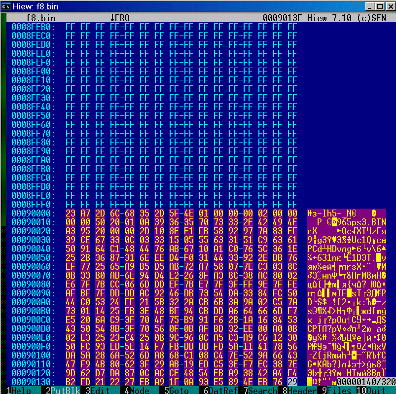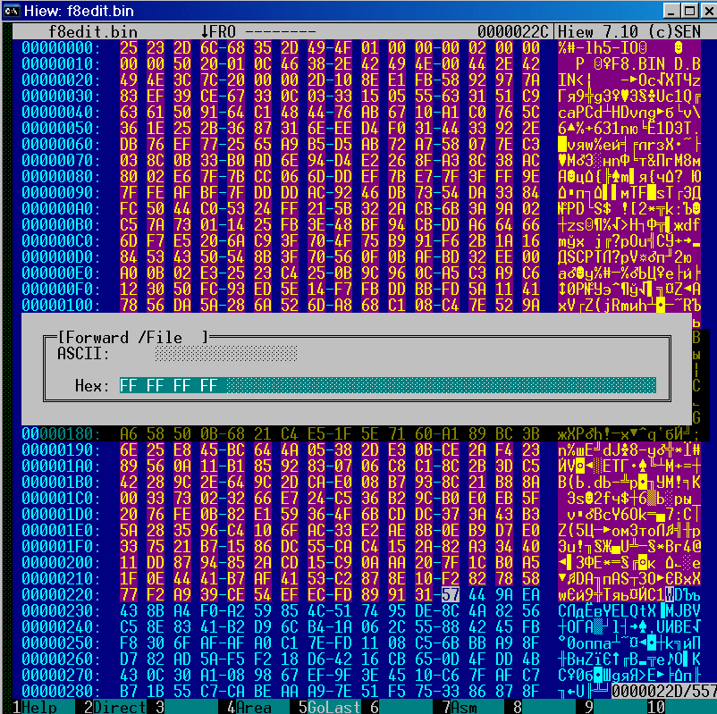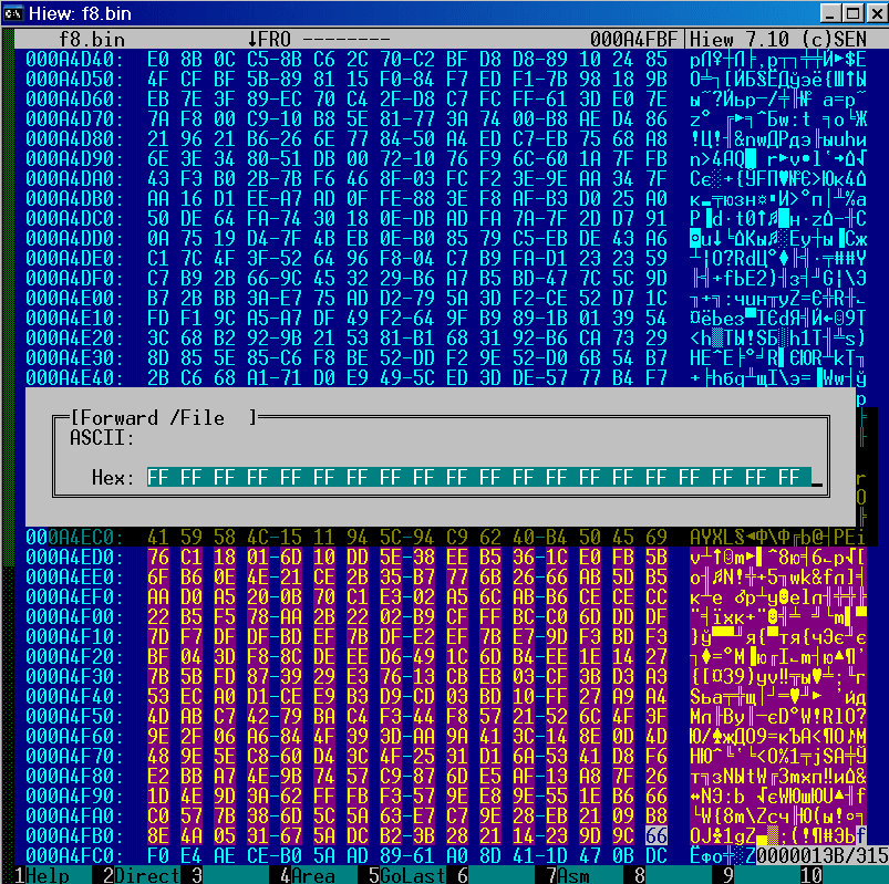 и забиваем ее эфэфками (ALT-F2 для hiew).