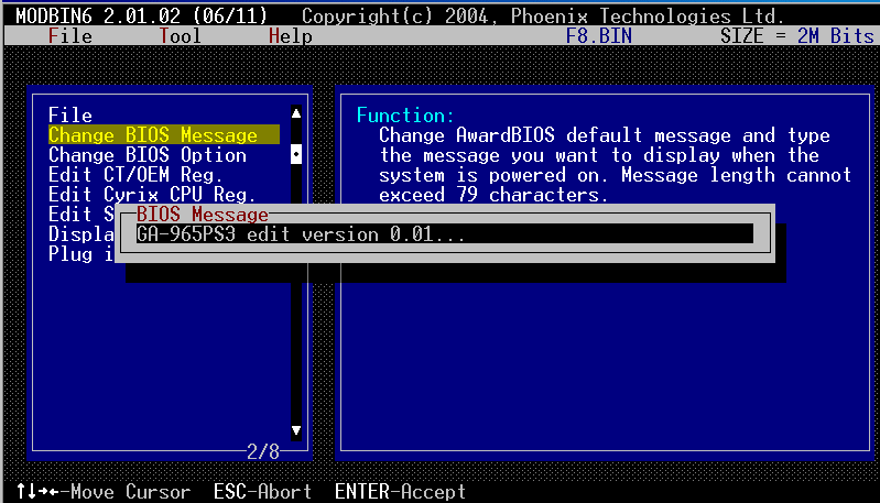 MODBIN6 2.01.02 - программа, позволяющая редактировать некоторые регистры чипсета, а так же изменять надписи/опции в BIOS Setup. Это стандартная утилита от самого Award-а.