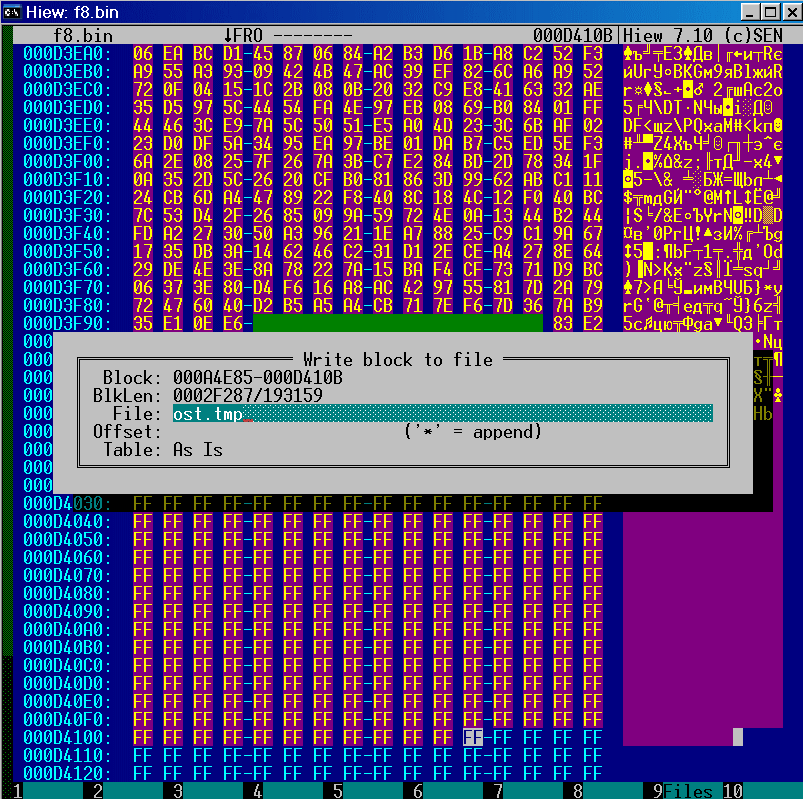 Для "запаса" (на всякий случай) захватим кусочек FF в конце (ведь размер упакованного "original.bin" может отличаться от начального) и сохраняем в файл.