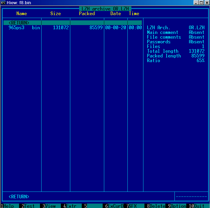 | LHA ver.2.55 - старый(1988-1991)-добрый архиватор от Haruyasu Yoshizaki, алгоритм которого и лёг в основу упаковки модулей Award BIOS. |