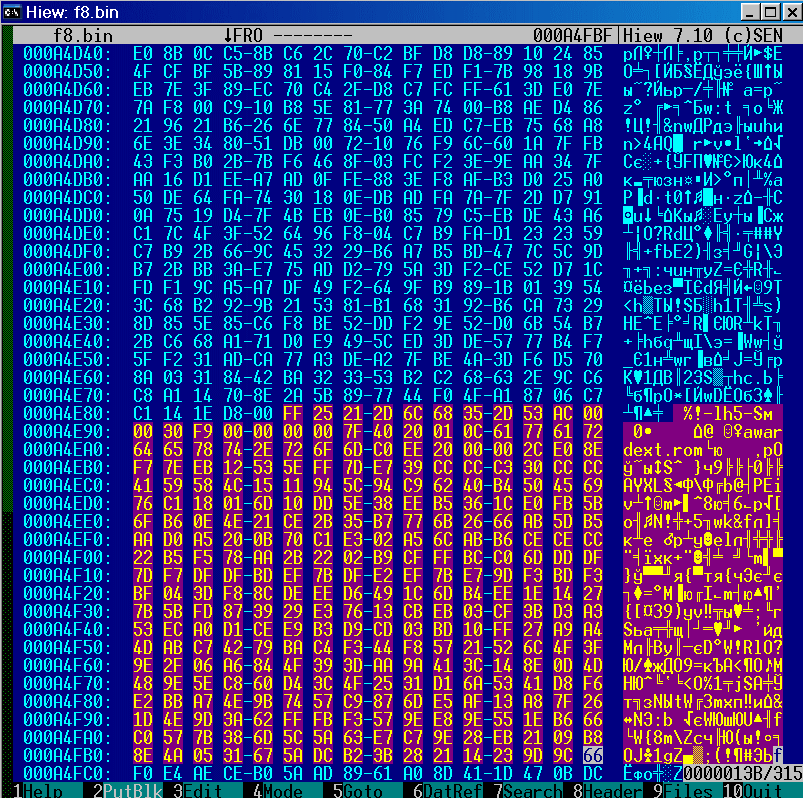 Обычно конец находится с первой попытки (удачный пример - с "трудностям" :) ), но сейчас "по дороге" попался незапакованный модуль, в котором тоже есть искомые "эфэфки". Пропускаем эту область и ищем дальше.