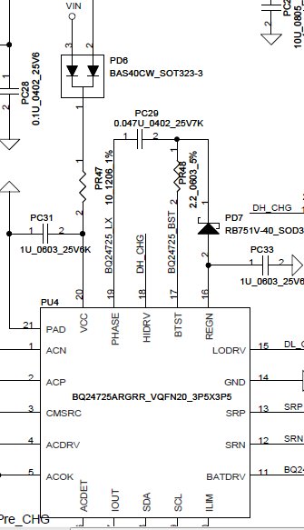 на втором фото PD6 VIN-19V и после резистора 19 вольт есть, но на BQ24725 на 20 ноге VCC питание отсутствует. На кондесатор PC31 19V приходит, но выходит 0. Это нормально или его попробовать перепаять?