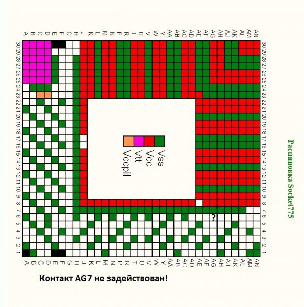 Пришла на ремонт материнская плата с диагнозом не стартует!При осмотре платы был обнаружен отломанный контакт в Socket процессора.Других дефектов не замечено.На плате все напряжения в норме но кодов нет.Посмотрев по расспиновке сокета отломанный контакт вообще не задействован.Так как больше причин в плате не замечено ,Я решил всё таки восстановить этот контакт и после этого плата благополучно запустилась и прошла все тесты!Теперь может кто нибудь объяснить в чём же дело,в неправильной схеме расспиновке сокета 775 или где тут собака порыла?